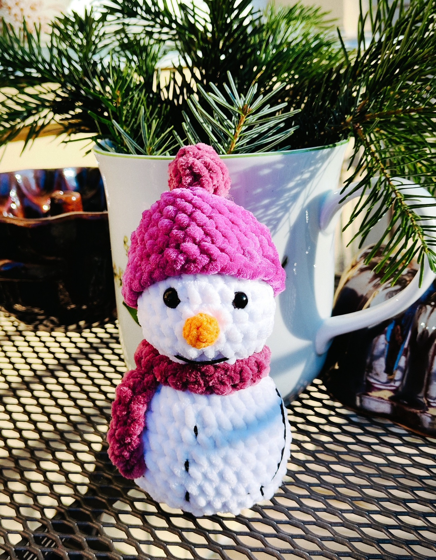 Tento roztomilý háčkovaný sněhulák přinese pravou zimní atmosféru do každého prostoru. Je skvělým doplňkem pro zimní dekoraci, adventní výzdobu nebo jako originální dárek.